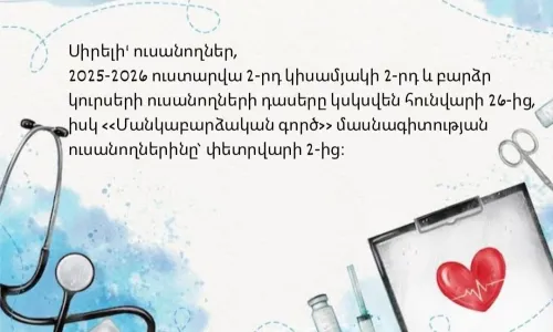 ՀԱՅՏԱՐԱՐՈՒԹՅՈՒՆՀՀ ԿԳՄՍՆ «Արարատի պետական բժշկական քոլեջ» ՊՈԱԿ հայտարարում է մրցույթ «Իրավունքի հիմունքներ» (72ժամ) առարկայի դասախոսի թափուր տեղի համար։Մրցույթին մասնակցելու համար պետք է ներկայացնել՝…