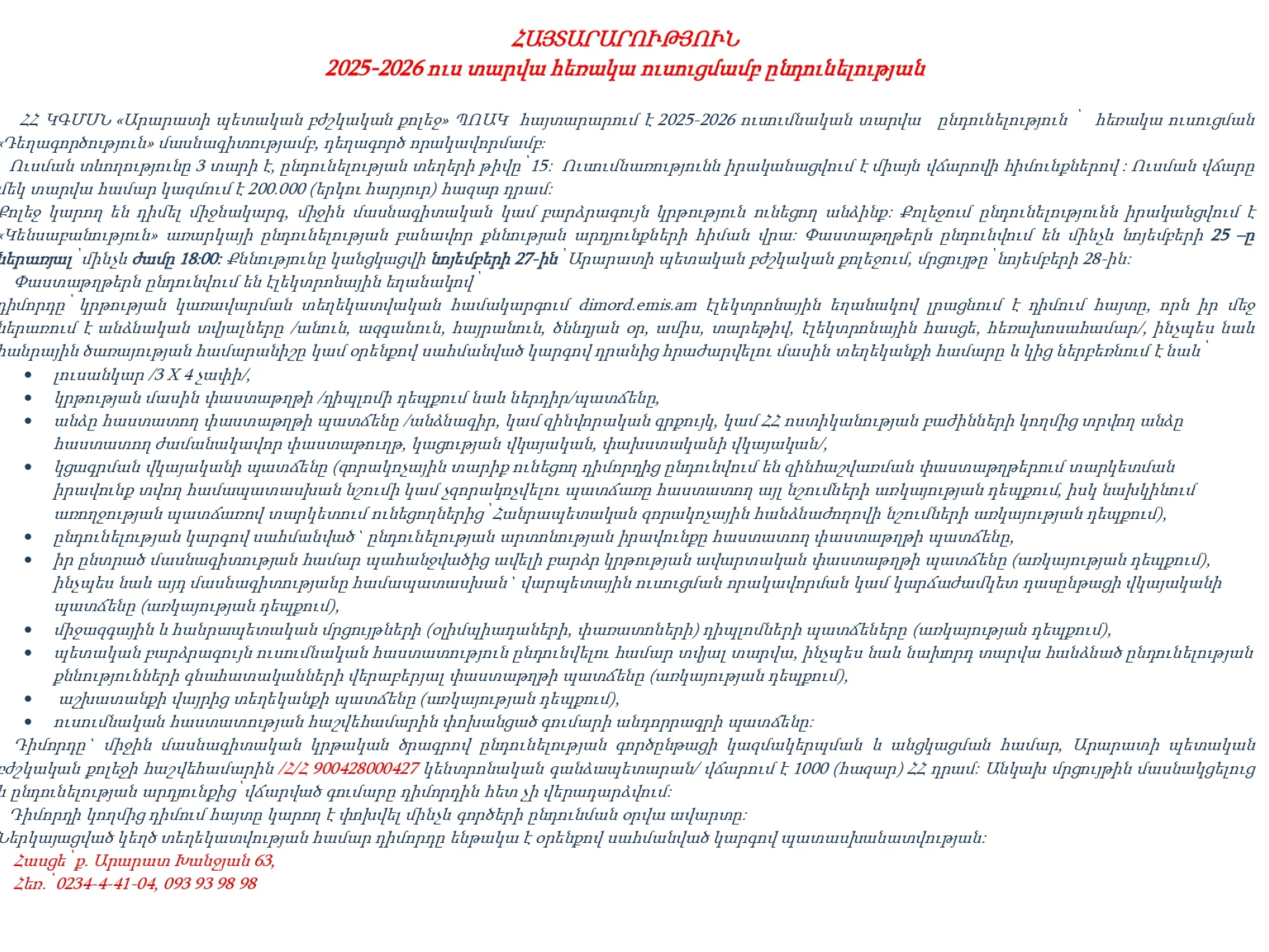 Միջնակարգ (12-ամյա) կրթությամբ ուսանողների համար